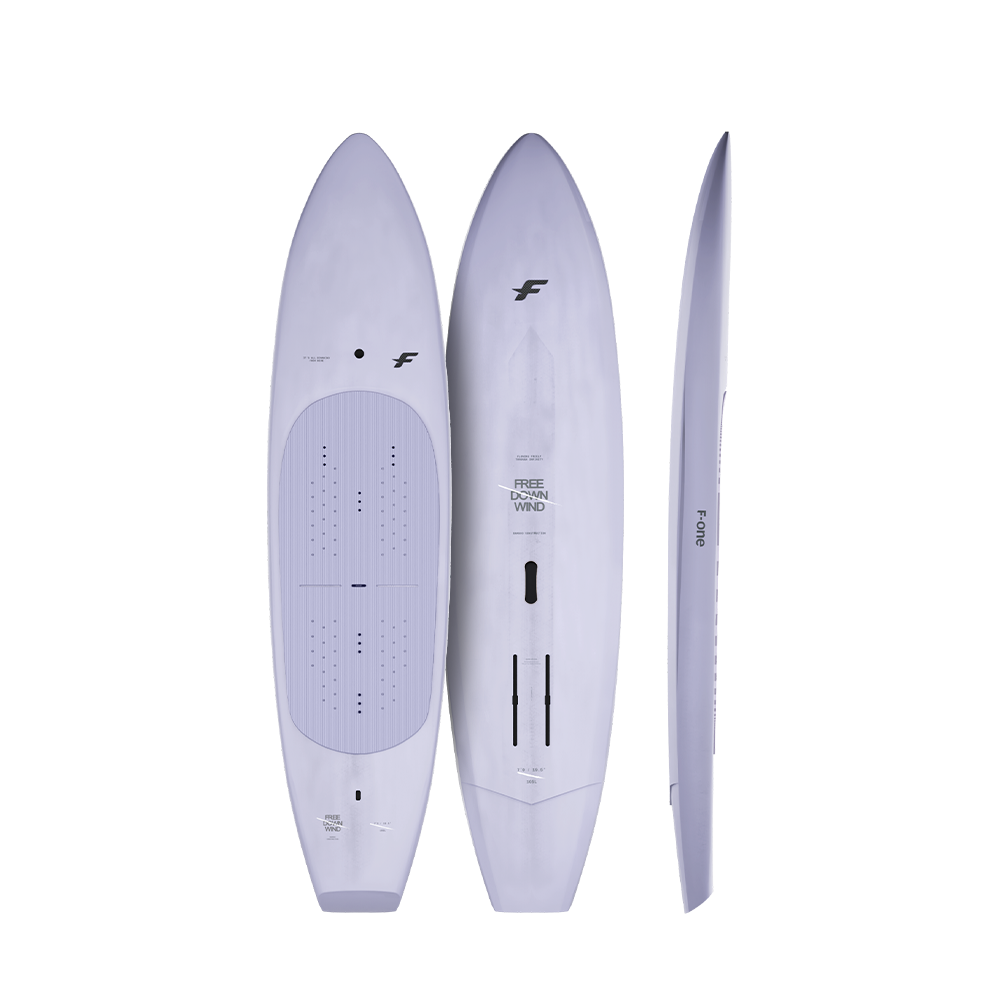 Comparée à la FREE SURF, la FREE DOWNWIND est une planche plus stable, avec une épaisseur accrue, un nose et une carène plus larges, ainsi que des rails plus carrés. L’appui des pieds est légèrement avancé, offrant la sensation des planches plus classiques F-ONE. Globalement, elle est conçue pour les riders qui privilégient la stabilité et les take-offs faciles, même dans des conditions difficiles ou dans le clapot.